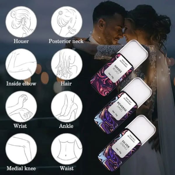 📦 3 x 10g faste parfumer – kompakte, passer i enhver taske